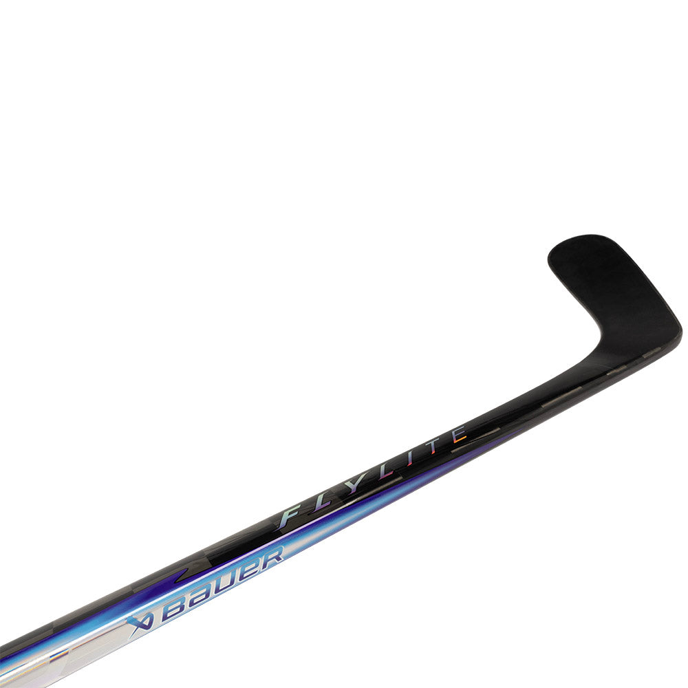 The FLYLITE ice hockey stick is the top model in the 2025 Bauer Vapor lineup and delivers maximum lightness and shot acceleration for the elite and pro level player. Building on the performance of the previous generation Hyperlite2 stick, the new FLYLITE model features Twitch Taper Technology and HYP2RCORE FT AL blade core bridge construction to maintain durability and load shots sooner with faster recoil for more efficient energy transfer and reactive release.