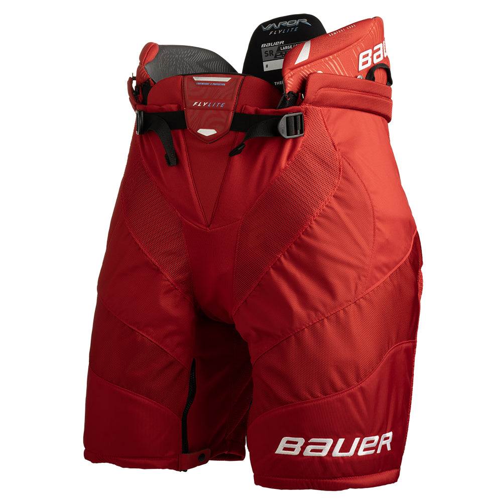 The FLYLITE hockey pant is the top model in the 2025 Bauer Vapor lineup and delivers maximum impact protection and flexibility for the elite and pro level player. Building on the performance of the previous generation HYPERLITE, the new FLYLITE model integrates an AEROLITE hip guard with CURV Composite spine protection, which provides the player with confidence and full coverage.