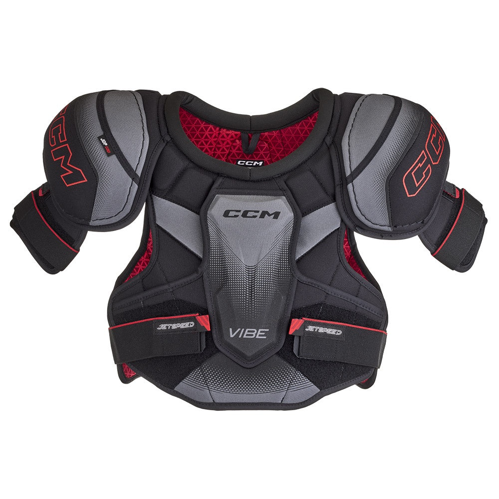 The Vibe hockey shoulder pad is an exclusive offering in the 2025 CCM Jetspeed lineup that delivers improved breathability and mobility for the competitive level player at a price point that makes it a unique value. Sitting below the FT680 this model keeps the look of the FT680 and features floating sternum and reinforced clavicle protection.