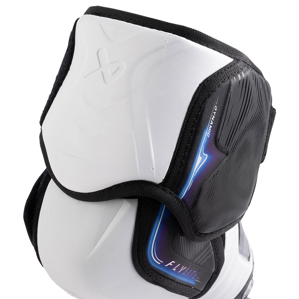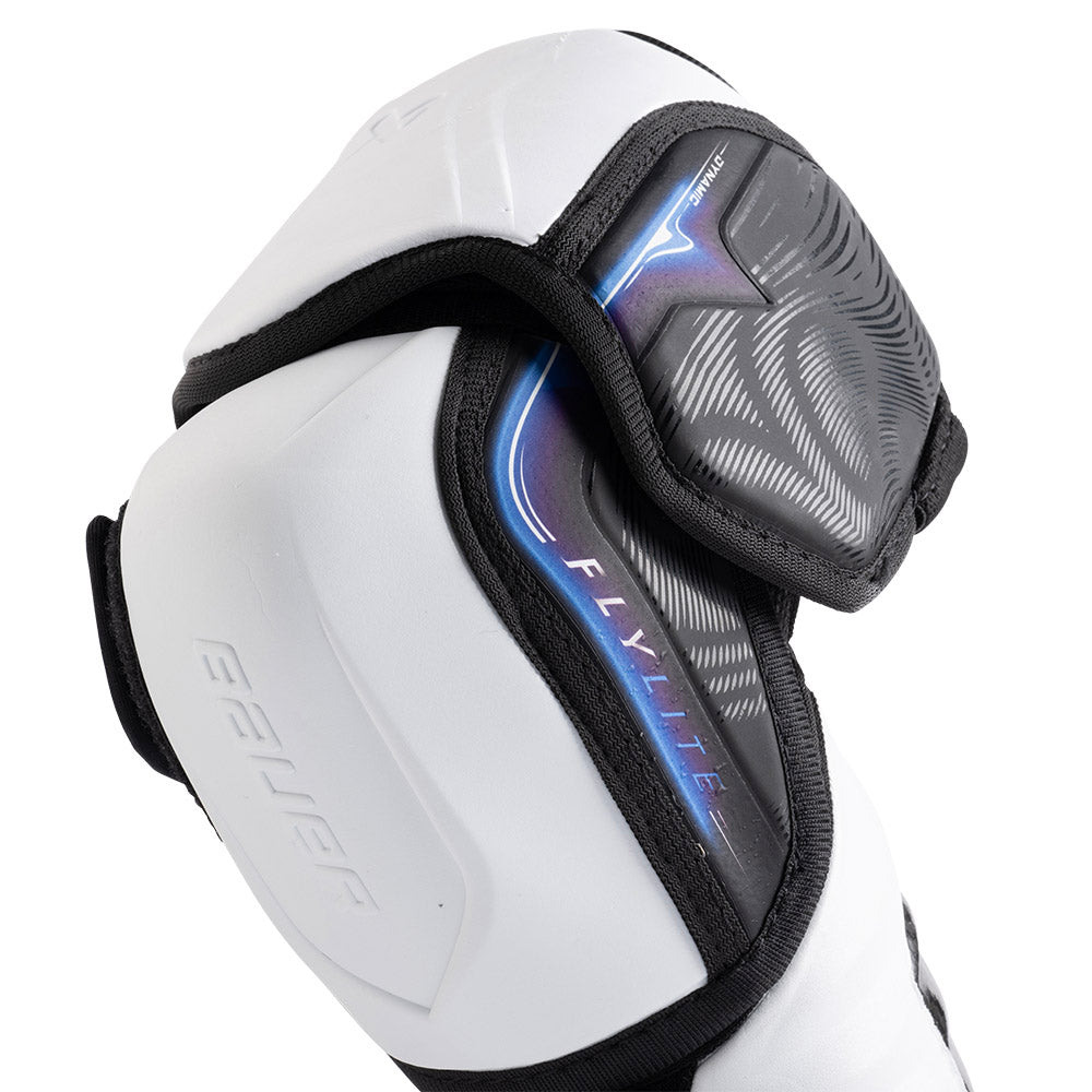 The FLYLITE elbow pad is the top model in the 2025 Vapor lineup and delivers maximum flexibility and impact protection for the elite and pro level player. Building on the performance of the previous generation Hyperlite elbow pads, the new FLYLITE model integrates Bauer's CURV composite with THERMOCORE ZERO lining allowing for maximum reactivity and breathability on the ice.